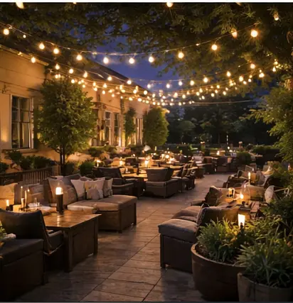 Lighting for outdoor living spaces, restaurants, patios, weddings, and special events.