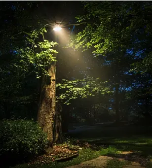 Fixtures installed high in trees cast natural, downward light that mimics moonlight—soft, elegant, and ideal for yards and patios.